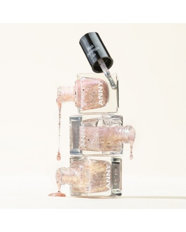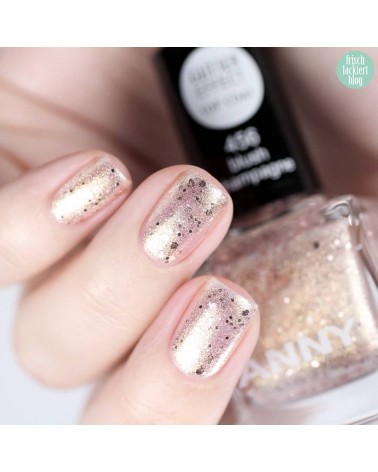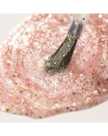A10.456 粉紅香檳色 香檳金與玫瑰金亮粉,匀撒在透明清澈的基底色裡,再用些許粉金偏光的六角形亮片點綴,擦出層層堆疊的立體感指彩。 blush champagne NEW>>blush sensation